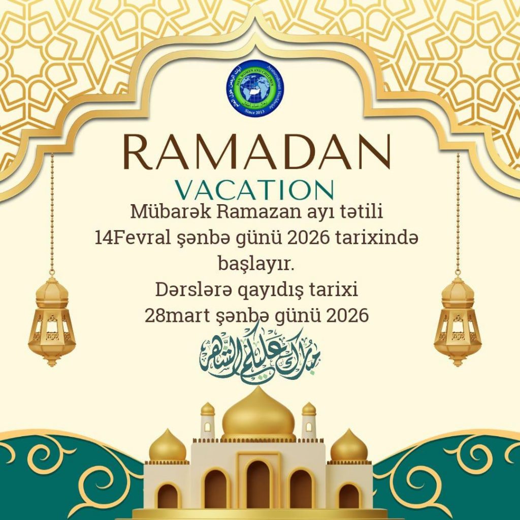 Əssələmu aleykum va rahmətullahi və bərakətuhu. Xoş gəlmisiniz Ayatur-Rahman mədrəsənin Azərbaycan bölməsində olan dəyərli tələbələrimiz.
